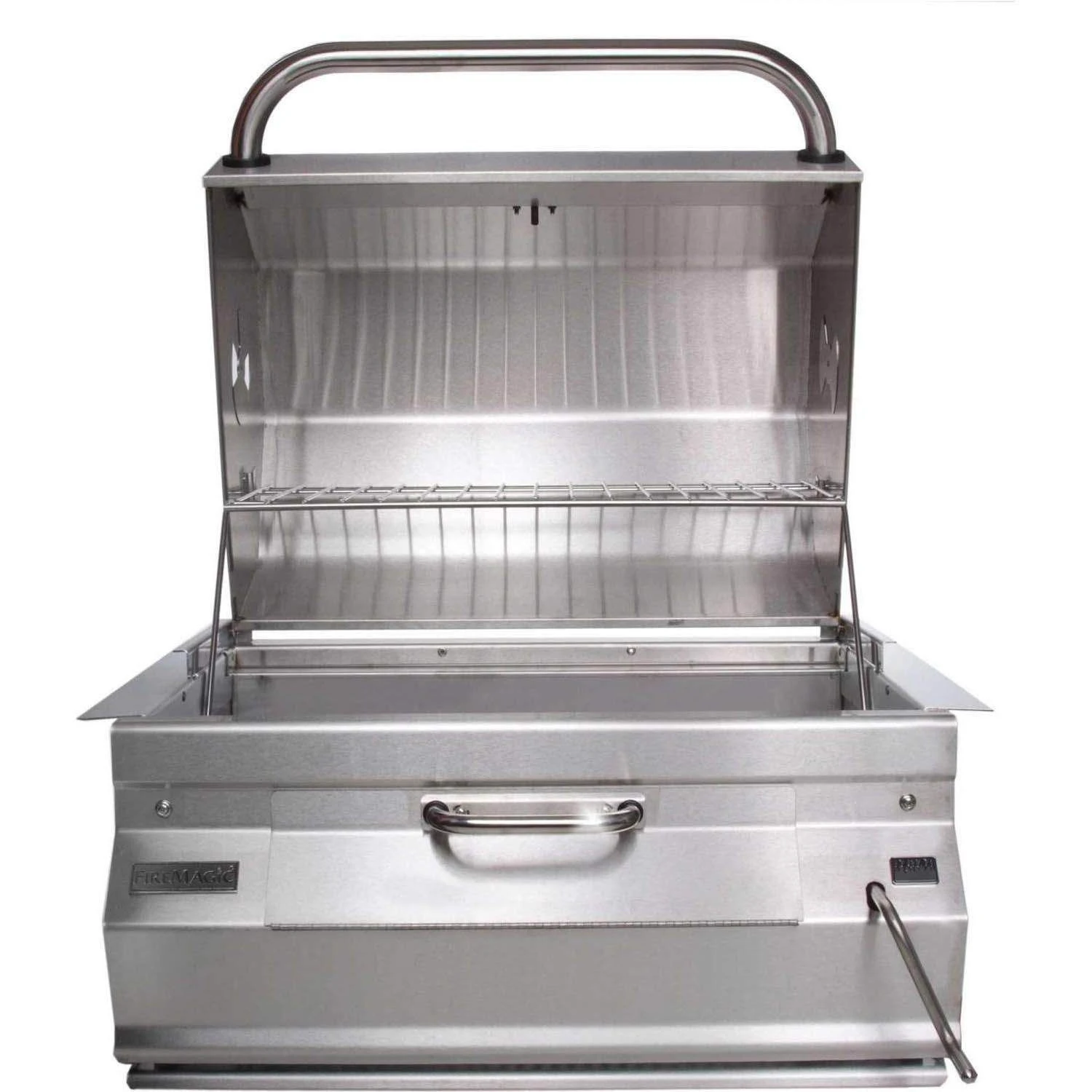 Fire Magic 12-SC01C-A Legacy 24-Inch Built-In Charcoal Grill with Smoker Oven/Hood provides a superior charcoal grill to help complete the ultimate patio paradise. The complete 304 stainless steel construction ensures a long lasting and durable product while the adjustable charcoal tray allows direct or indirect cooking. The front charcoal door provides easy access for loading charcoal while cooking and the large 432in² offers plenty of premium grilling space while the rear exhaust vent and adjustable air shutters allow easy temperature control. Also included with this charcoal grill is the unique charcoal shield to allow indirect cooking and smoking, along with a warming rack for additional cooking space. The high quality construction of this grill is equaled only by its beautiful design, featuring a satin stainless steel face plate to separate this Fire Magic grill from the rest of the pack and provide a one of a kind charcoal grill.
