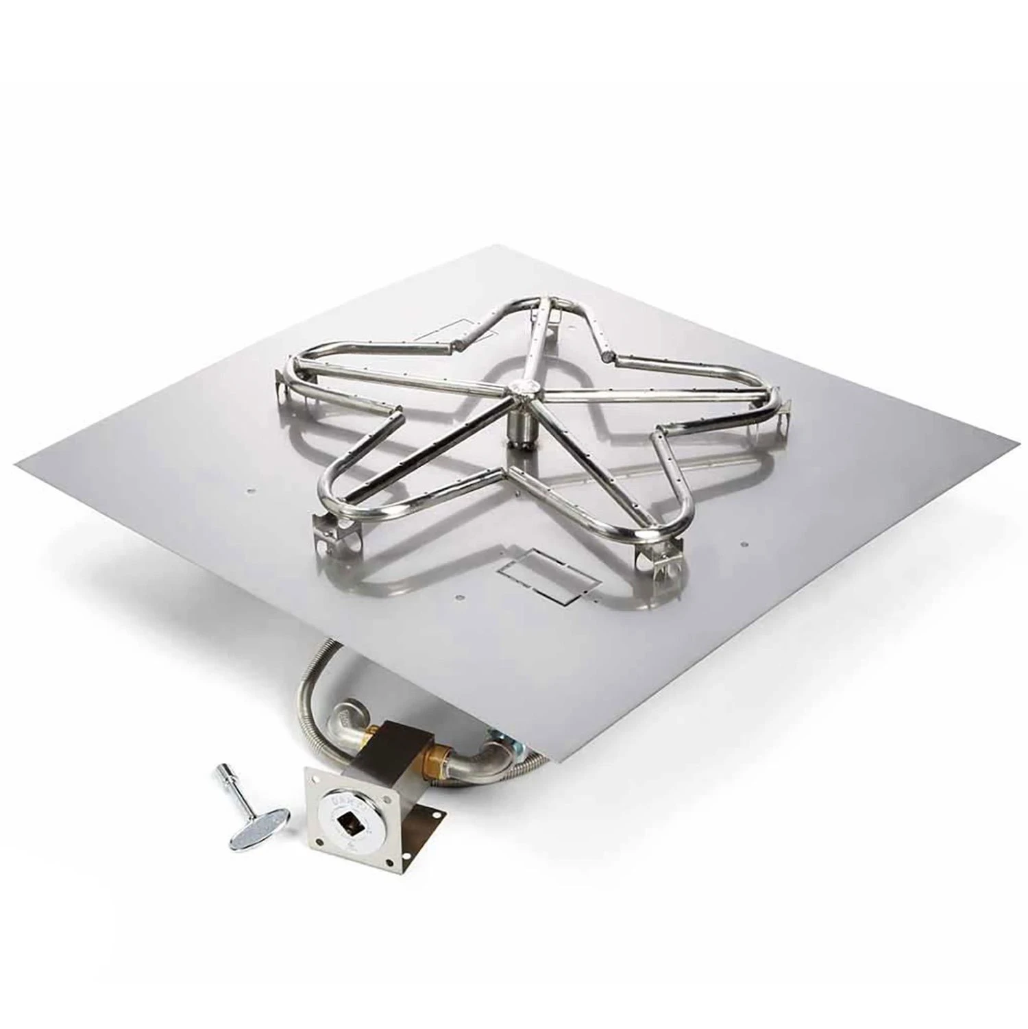 HPC Fire MLFPK Match Light Gas Fire Pit Kit, Square Flat Pan combines high quality construction and reliability to complete your gas fire pit project. The manual ball valve allows simple & reliable control over the flow of the gas while ignition is achieved simply by taking a lighter or match to the burner as you slowly open the gas valve. The penta shaped burner is constructed from premium 304 stainless steel; each burner features standard burner ports, a 1/2″ female gas inlet, and is neatly machine welded to produce a seamless and durable product. Burners and pans are also backed by a Limited Lifetime Warranty from HPC.