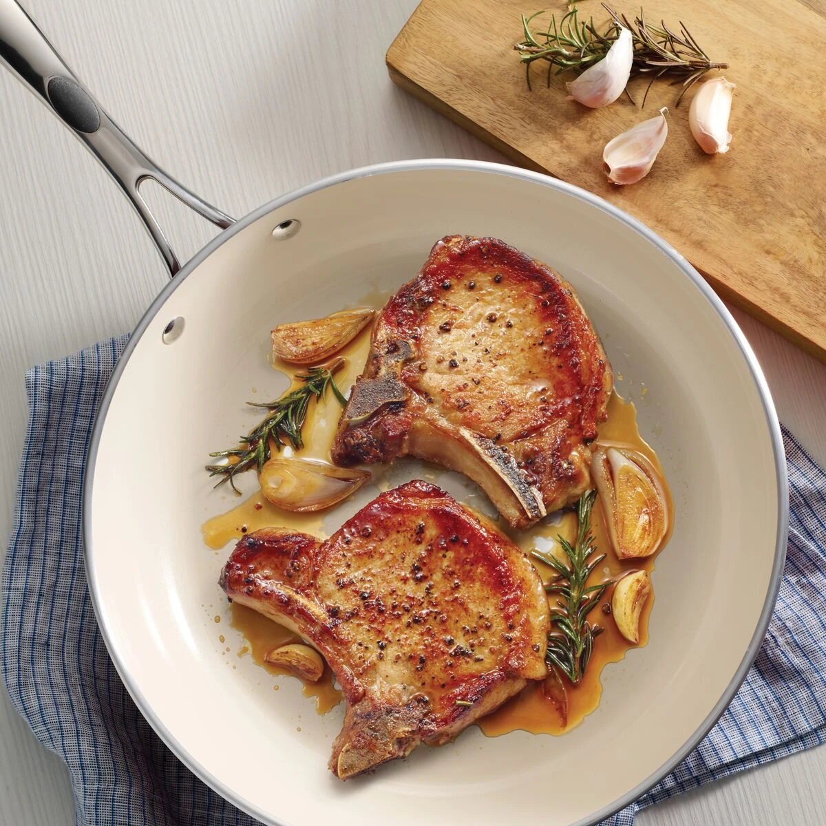 Tramontina”s Ceramica Deluxe 12 in Ceramic Fry Pan is the ideal option for aspiring chefs who want a pop of design in their kitchen, as well as a durable go-to pan for scrambling eggs and making pancakes. The Ceramica Deluxe cookware line features heavy-gauge aluminum construction, a durable porcelain-enamel exterior and an easy-to-clean ceramic interior that is PTFE, PFOA, lead- and cadmium-free. The riveted, ergonomically designed soft-grip cast stainless steel handle provides added support when handling. Oven-safe up to 350°F / 176°C and compatible with gas, electric, and ceramic glass cooktops.